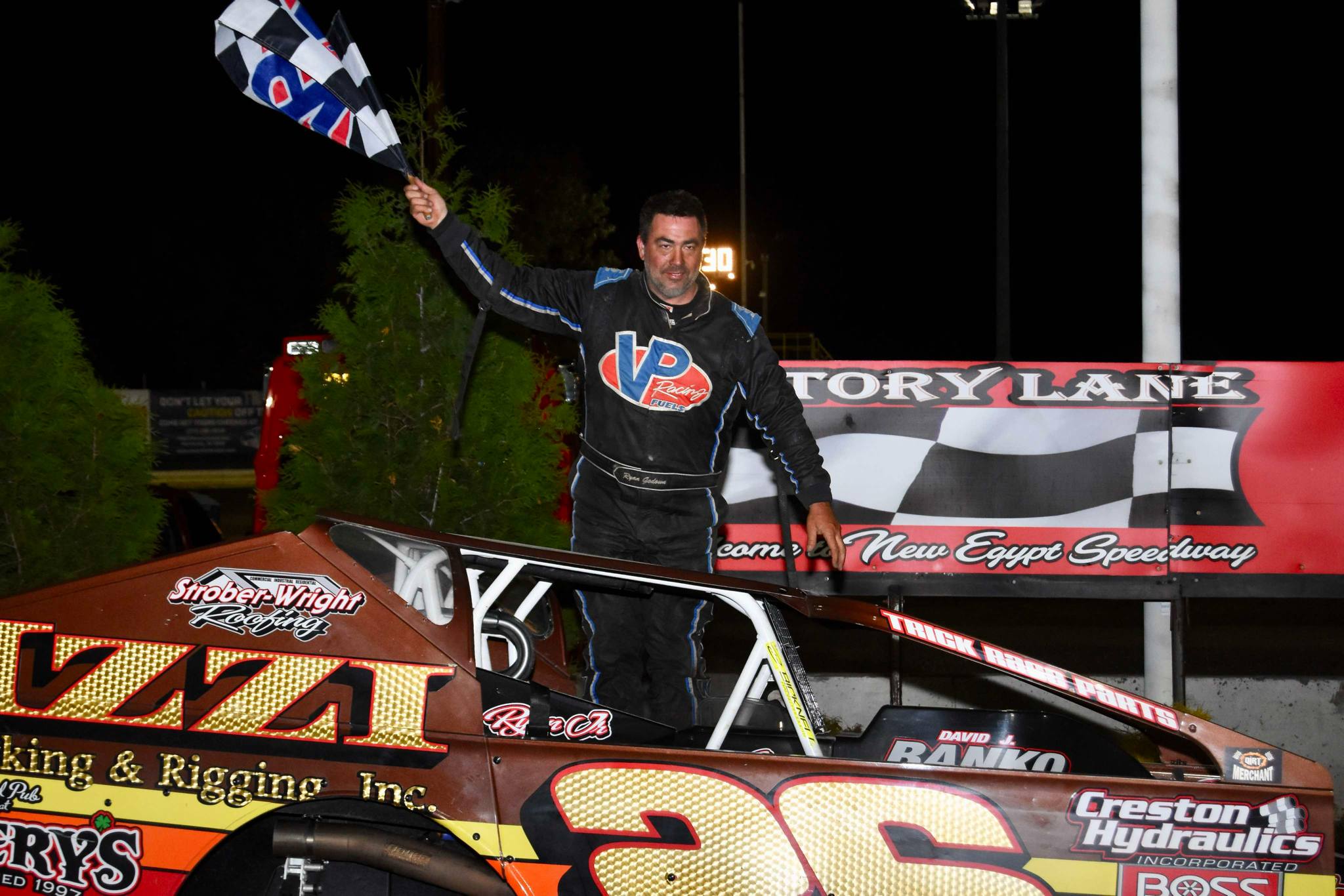NEW EGYPT, NJ – On Fire. For the third consecutive race, Ryan Godown claimed the Modified main event at New Egypt Speedway, this one worth $3,131 courtesy of Elite Welder Training & Testing. The 31-lap main event fired off with only one yellow flag slowing the proceedings, which came shortly after Godown wrestled